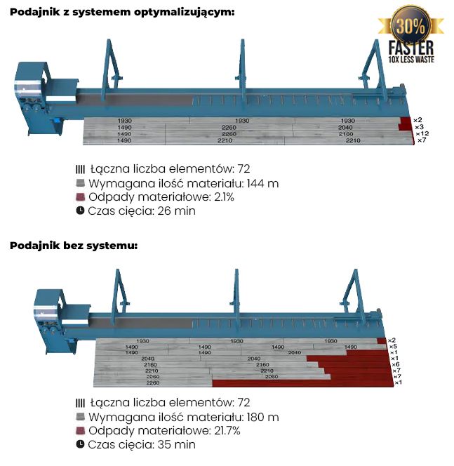 Nadaje się do pracy z istniejącymi wydrukowanymi listami cięć, oferując korzyść automatycznego pomiaru piły, przy jednoczesnym zachowaniu dotychczasowego sposobu zarządzania danymi produkcyjnymi.
